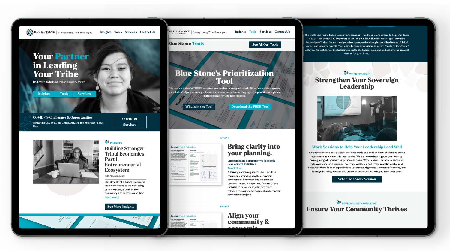 After months of work and feedback, we’ve completely rethought how we can make a better site for you. To that end, we have created the new Blue Stone website: a valuable resource to help Tribal leaders, communities, and economies thrive.