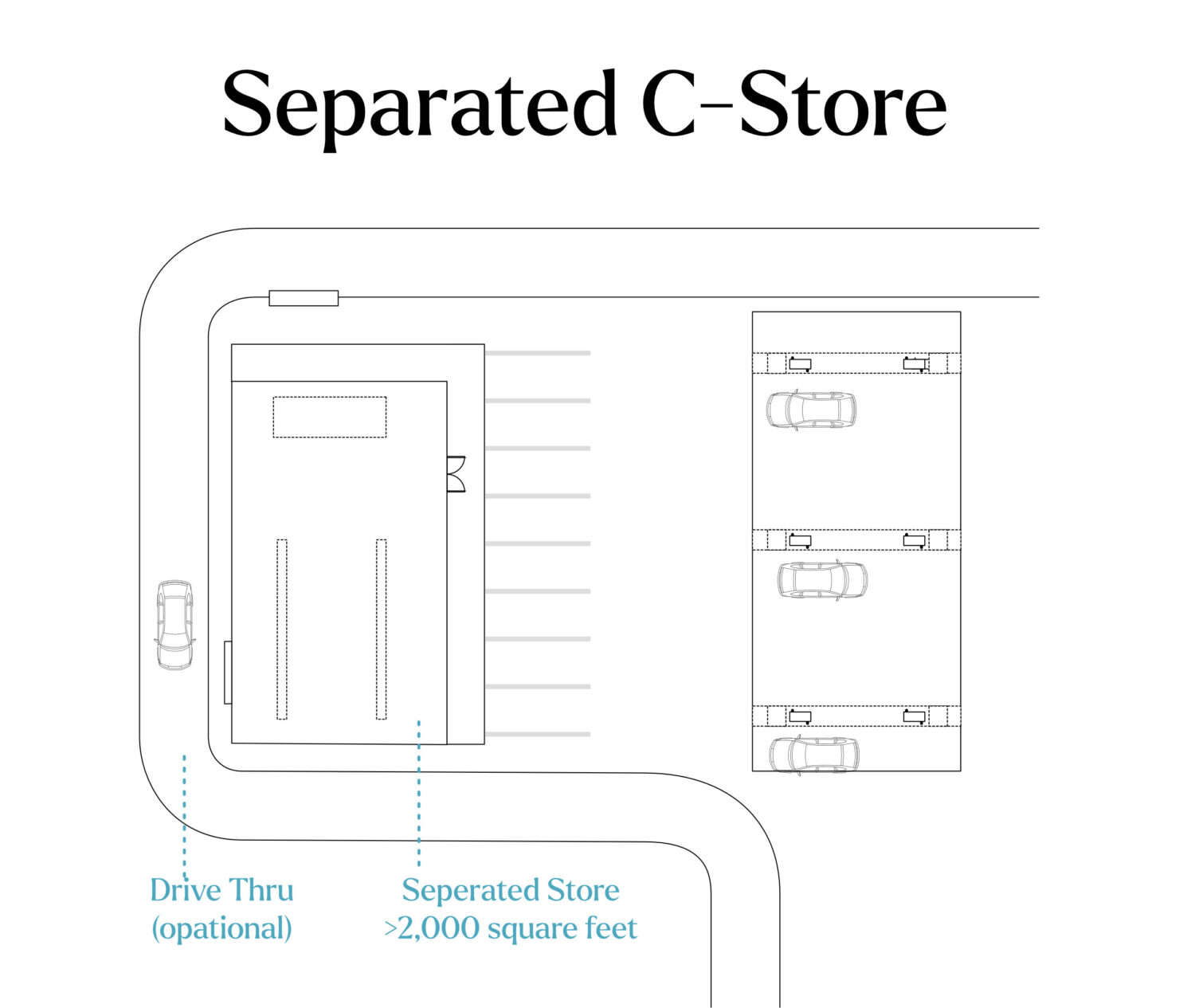 3. Separated C-Store: Lastly, there is a concept where the C-Store is now separated from the gas pumps. These can also be about 2,000 square feet, but there’s an opportunity to really grow.